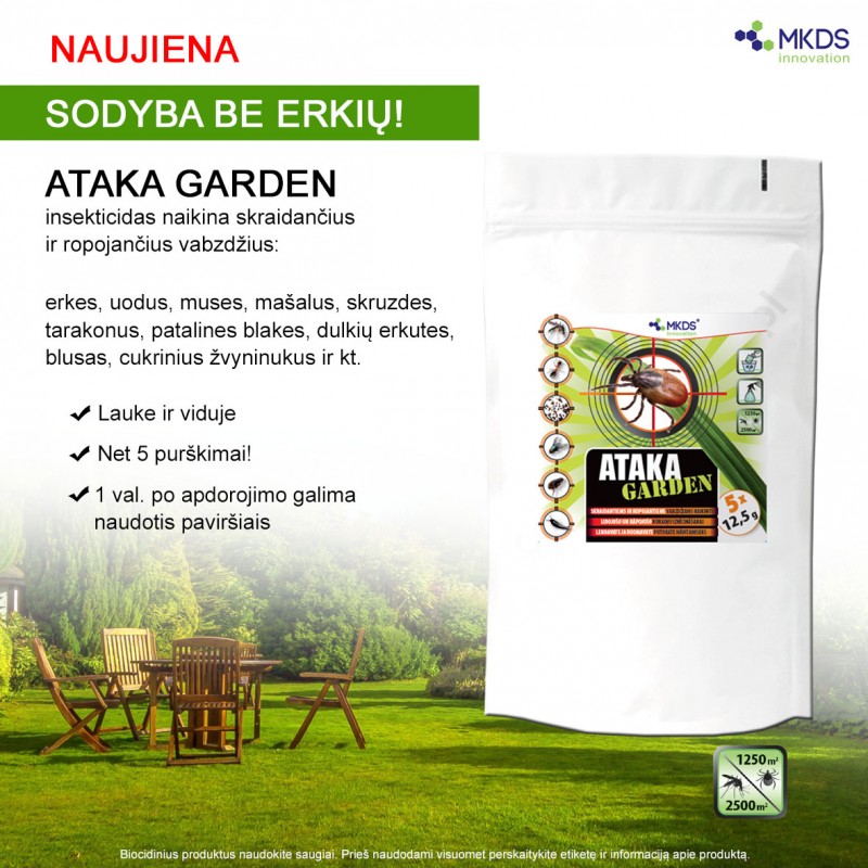 Ataka Garden skirtas skraidančiųjų vabzdžių (musių, uodų, mašalų), ropojančiųjų (tarakonų, patalinių blakių, skruzdėlių, dulkių erkučių, blusų, cukrinių žvyninukų) ir erkių naikinimui komunaliniuose, pramoniniuose, tuščiuose gyvenamuosiuose ir gyvulininkystės pastatuose, tuščiuose sandėliuose, automobilių stovėjimo aikštelėse, lauke technogeninėse zonose (terasose, balkonuose, ant šaligatvių ir ant kitų grindinio paviršių) bei buityje.